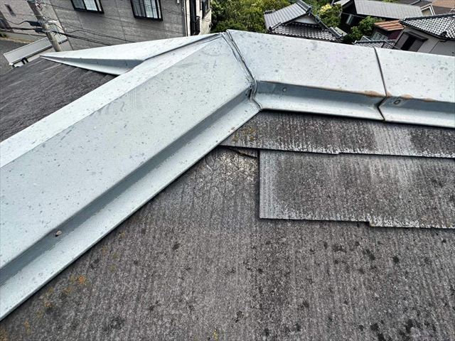 カバールーフ工事では、既存の屋根材はそのままですが、棟板金は撤去して屋根面を平らにする必要があります。