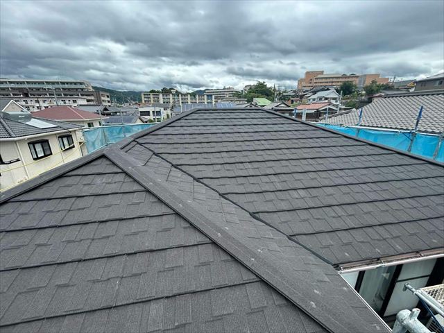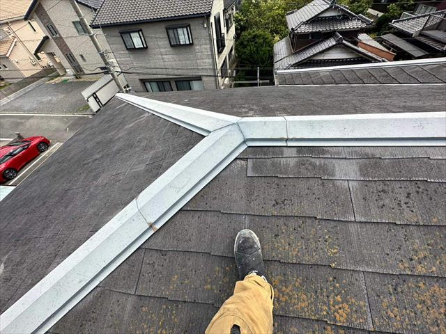 棟板金を取り付けたら、カバールーフ工事の完了です。