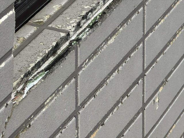 一部だけ格子が付けられている箇所には笠木がなく、そこのコーキングがきれていたことで雨水が浸入したようです。