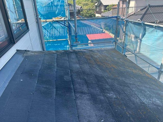 スレート屋根では、このように塗膜が劣化すると、屋根材に雨水が染み込みやすくなり、脆くなったり防水性が低下してしまいます。