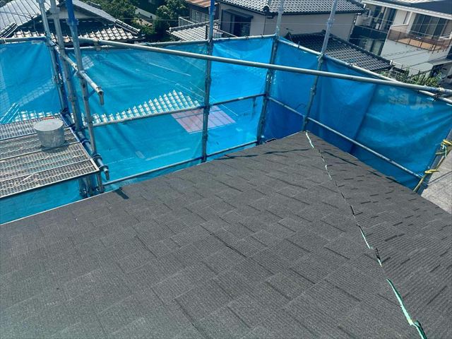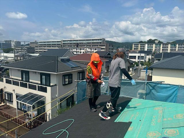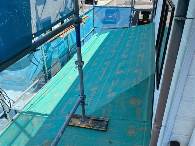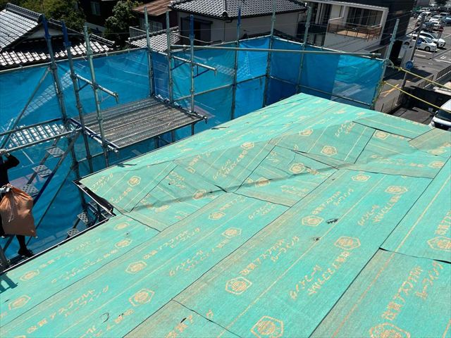 すぐに新しい屋根材を被せるのではなく、既存の屋根材の上にルーフィングという高い防水性がある防水シートを敷設します。