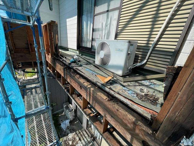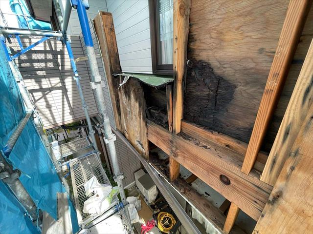 画像で分かるように、木材が黒く変色し、一部は完全に腐食して強度が失われていました。