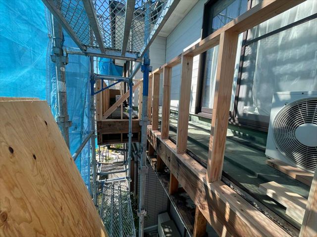 撤去した部分に木材を使用して、新しく下地を造作しました。