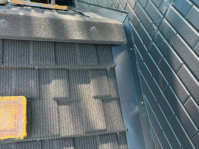 屋根材の他にも、屋根頂上に取り付けられている棟板金にも劣化が見られました。