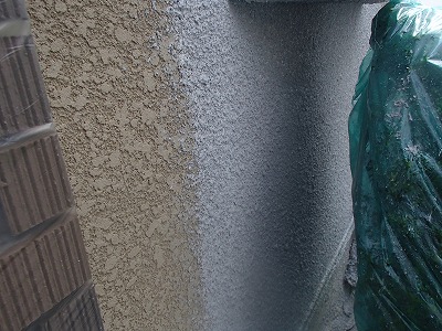 こちらは以前のモルタルと新たに吹き付けたモルタルの取り合い部分です。
