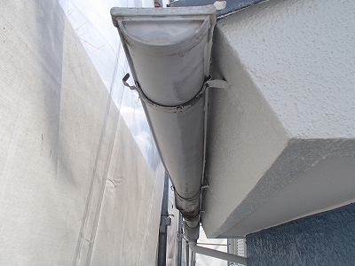 塩ビ管の樋が紫外線劣化により硬化し、割れている状態でした。