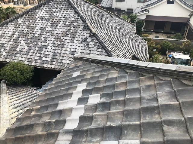 大和郡山市でお寺と住宅部分のいぶし瓦屋根の補修工事を行いました
