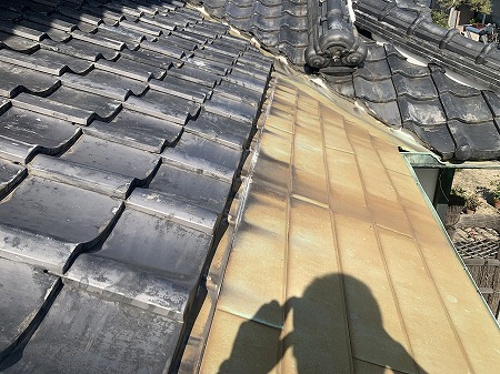 ホーム > 大和高田市|一文字軒瓦下の銅板穴あきを防水シートで賢く雨漏り…
