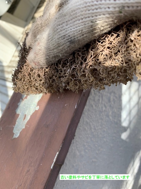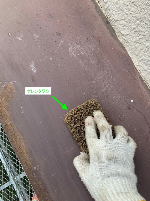 建物の金属部分や木材部分は、さらにケレンという作業で古い塗料やサビを落とします。もちろん全て手作業なんです٩( ‘ω’ )و