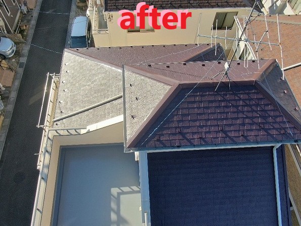 塗装後の屋根はこのように、美しい色合いがよみがえりました✨