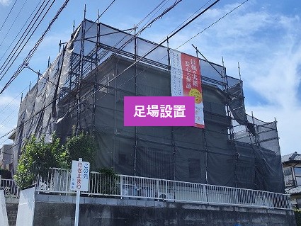 まずは安全確保のため、建物全体に足場を設置します。