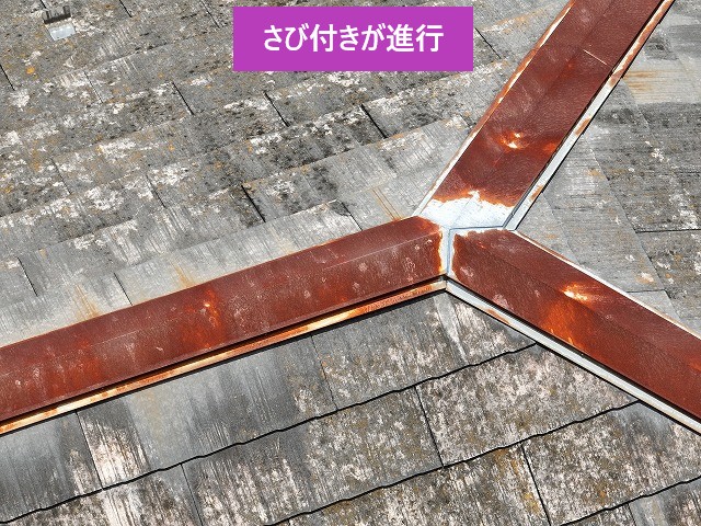 さらに、棟板金を確認すると、さび付きがかなり進行していました。