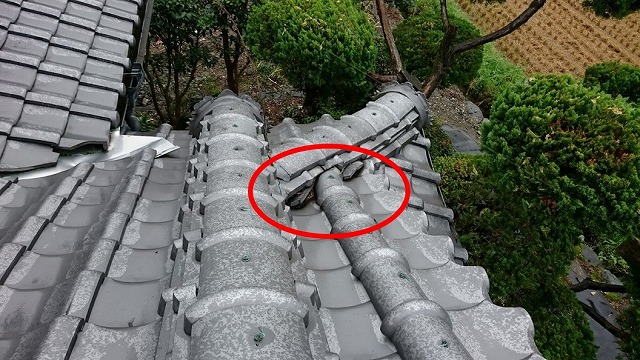 東温市横河原でイタチ対策と隅棟の雨漏り予防のための清掃作業