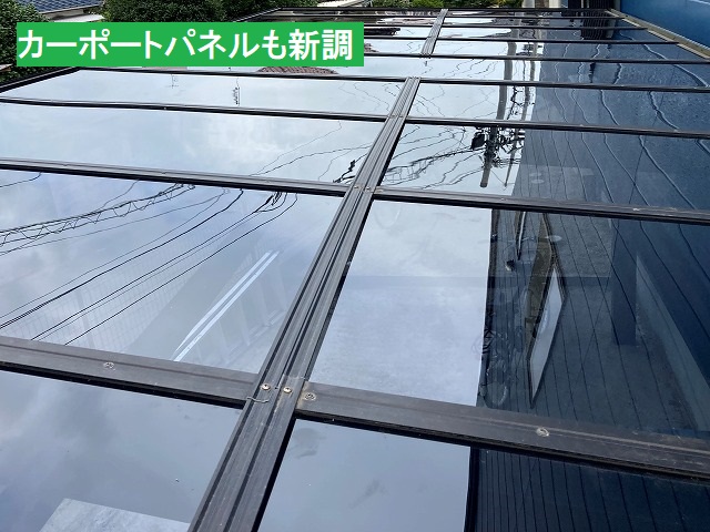 水戸市の現場のカーポートパネルは、割れやヒビが入っているパネルもあったため、足場解体後新しいカーポートパネルを取り付ける事になっています。