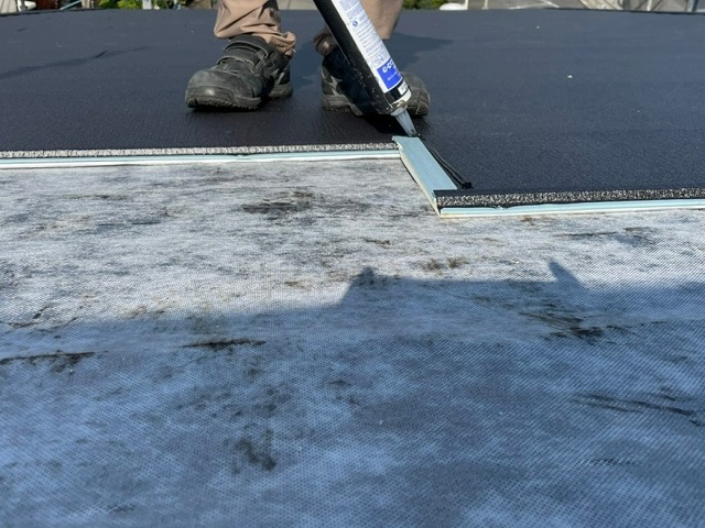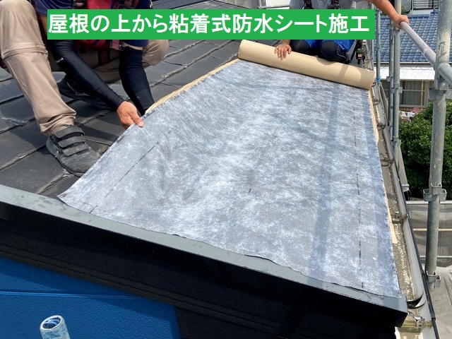 カバー工法は、既存の屋根材の上に防水シートを施工する事から始まります。