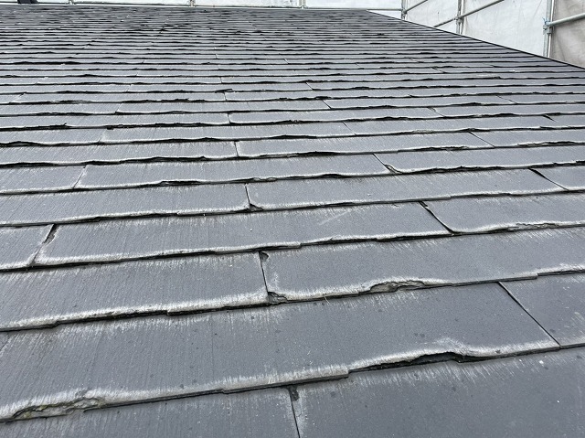 この対象屋根材は、ミルフィーユ状の屋根材で表面が剥がれてしまうので、屋根塗装を行っても塗装を施した面が剥けてしまうので屋根塗装を施せない屋根です。