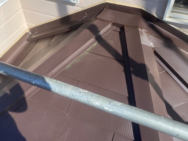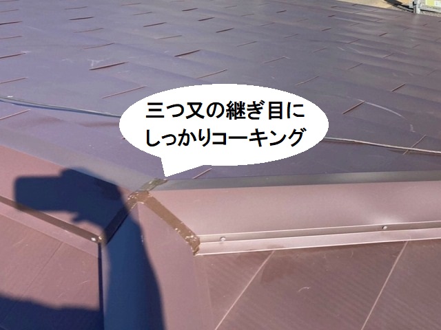 更に、棟板金の継ぎ目である三つ又板金部にもしっかりコーキング処理!