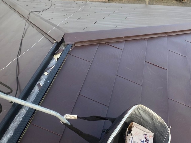 屋根の割り付けもしっかり行っているので、縦線も均等に葺かれていますねっ(^^♪