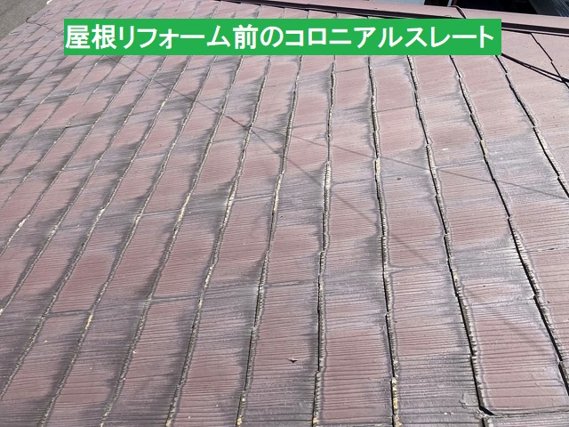 屋根リフォーム前の小美玉市のコロニアルスレートです。