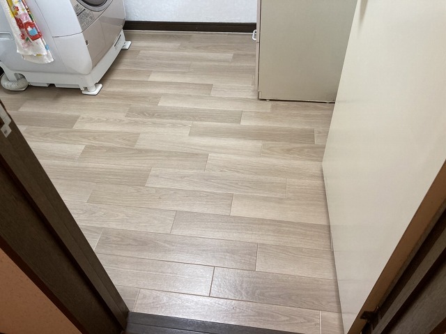 洗面所は洗濯機を外して移動してフロアCFを新しくし、壁紙クロスも全周新しく張り替えてイメージも一新!明るくなりましたね(^^♪