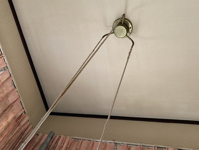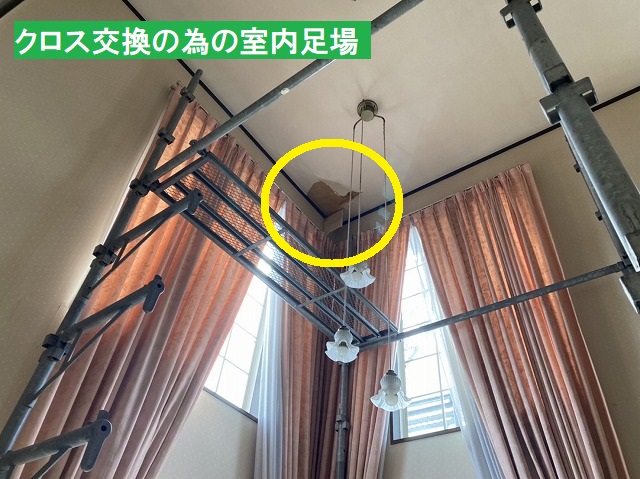 吹き抜け天井クロスの張り替えは、室内に足場を設置して行いました。