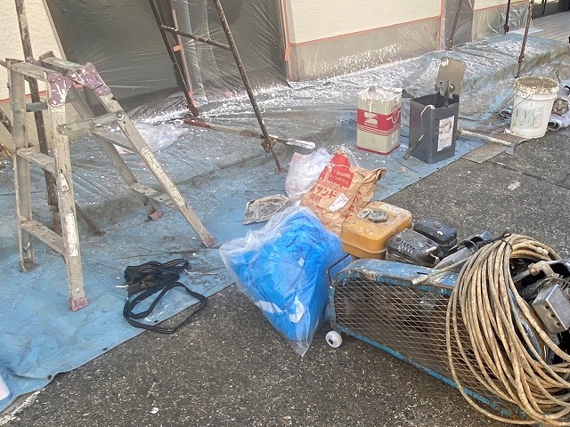 今回は、三連テナントの中央部に位置するテナントでの工事なので、周辺の外壁模様と類似したパターン再生を行いました。