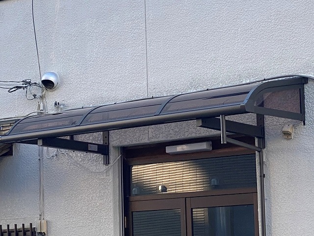 今まで飲食店に貸していたテナントを、今後は事務系の貸しオフィスとして使用したいため、瓦系の庇屋根からオフィスっぽいテラス屋根に変更したかった。