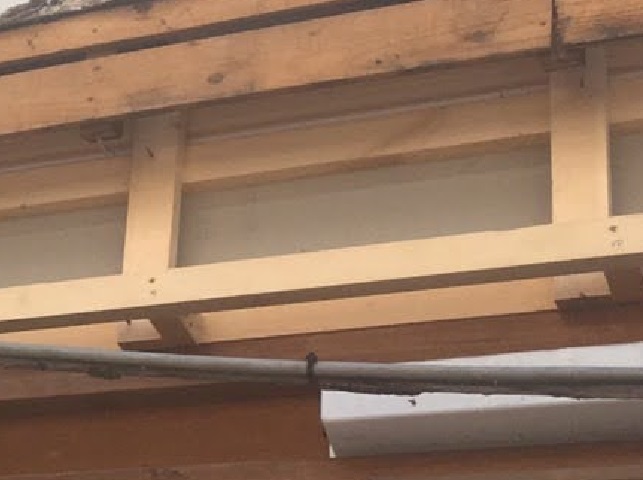元々あった和風の瓦屋根庇は跡形もなく解体され、パネルで塞いである状態でした。