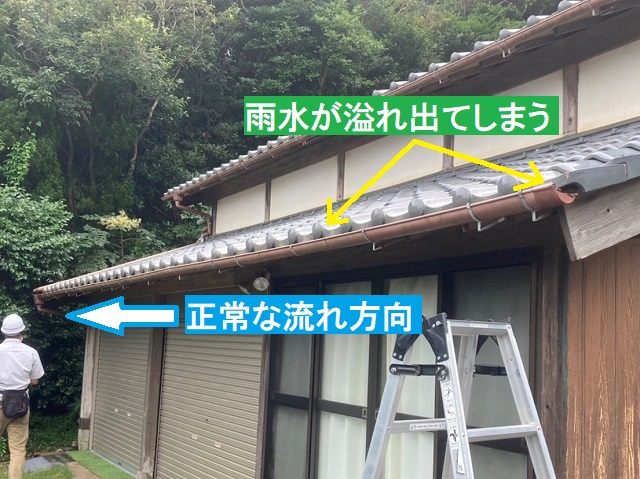 雨樋から雨水が溢れ出てしまう