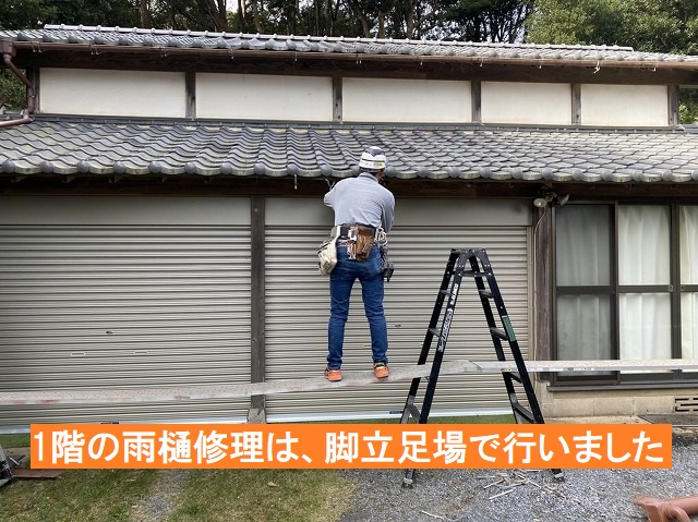 1階の雨樋修理中!