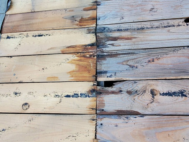 この野地板の下は屋根裏天井なので、冒頭でご紹介した屋根裏天井への雨漏りに繫がっていた場所ですね。。。