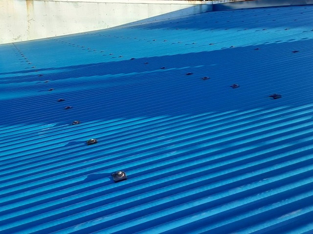 この屋根工事方法は、作業小屋・畜産系の小屋屋根・庇・駐車場・駐輪場など居住スペースではない金属波板の改修に適しています。