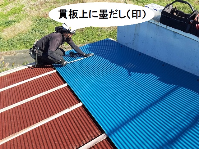 ガルバリウム波板に貫板の位置を墨出し