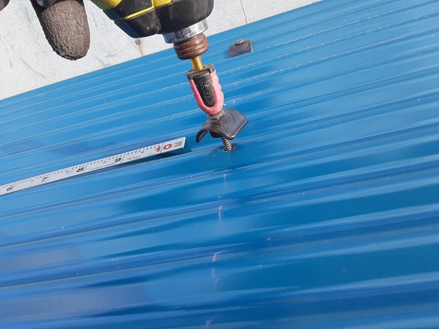 今回は、この貫板上に新しいガルバリウム波板を敷きこみ、傘ビスで固定します。