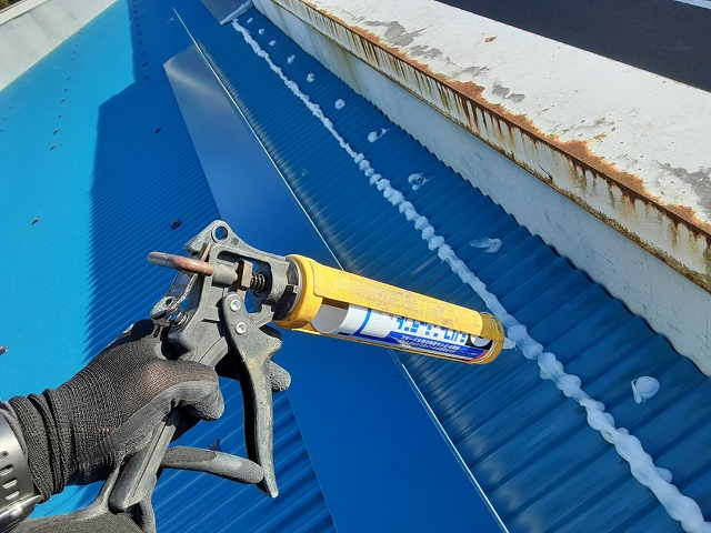 今回の現場は、傾斜が緩い屋根なので板金を大きめに作って強風時でも雨が吹き上がらないように対策し、接地面には多めにシーリング材を充填して漏水対策も施しました!