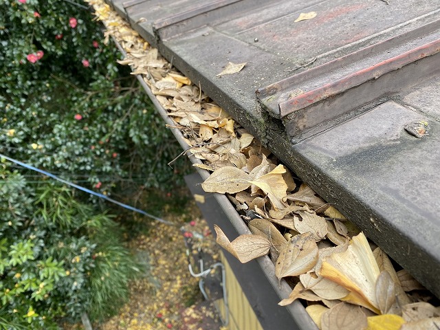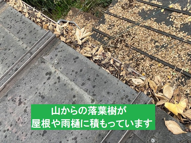 隣地の山から沢山の枯葉が屋根や雨樋に落ちてくるので毎年業者さんに清掃をしてもらっています。