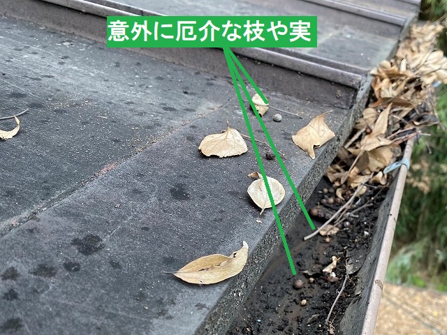 今回は、屋根の枯葉を掃き落とし作業と雨樋詰まり解消の作業でしたが、環境が関係している症状は無責任に改善策をお応えできないのが歯がゆいですね。。。