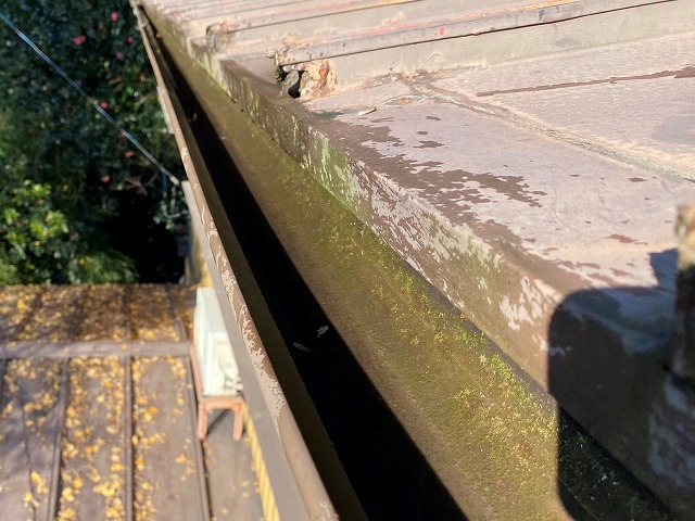 作業前の屋根や雨樋の様子ですが、もはや雨樋は機能できていませんでした。