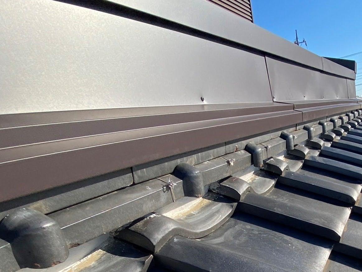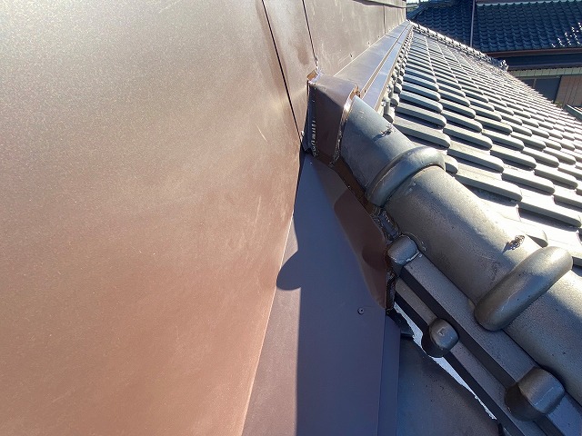 また、以前雨漏りを起こしていた葺き止めと降り棟の緩衝部も板金で納める事で、漏水にも強い仕様に生まれ変わりました。