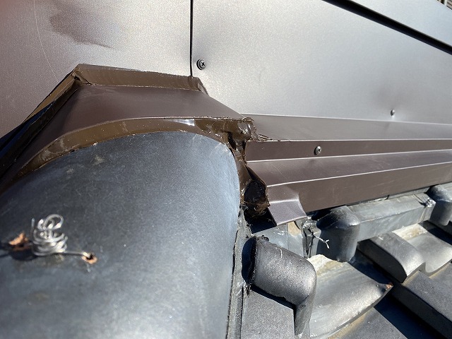 このまま放置してしまうとズレた隙間から雨水が浸入し、葺き止めの土台がなお一層崩れる事につながります。