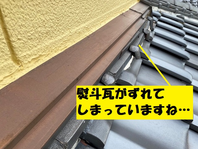 さらに、熨斗瓦と呼ばれる瓦がズレて抜けかかっていることも確認できました。