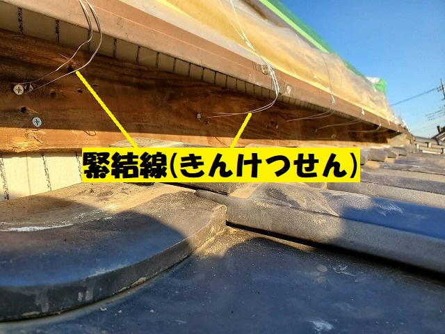 葺き止め部には貫板と呼ばれる木の板を入れて、熨斗瓦を固定するための緊結線を出します。