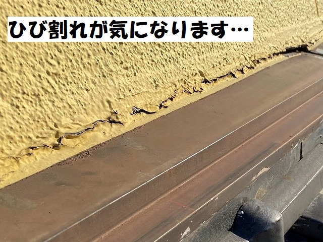 また、同時に右画像のような葺き止め緩衝部の外壁割れも気にされていました。
