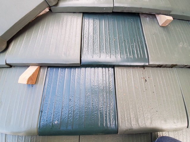 この2枚が、今回新しい瓦で差し替えを行った部分です。
