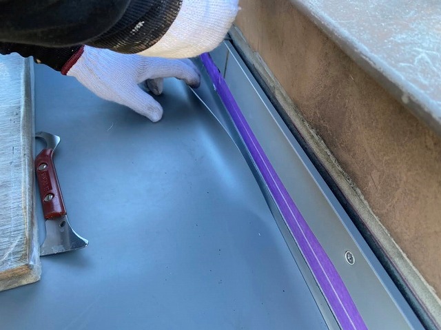 今回は、既存のシート防水の上から行う『かぶせ工法』での防水工事です。