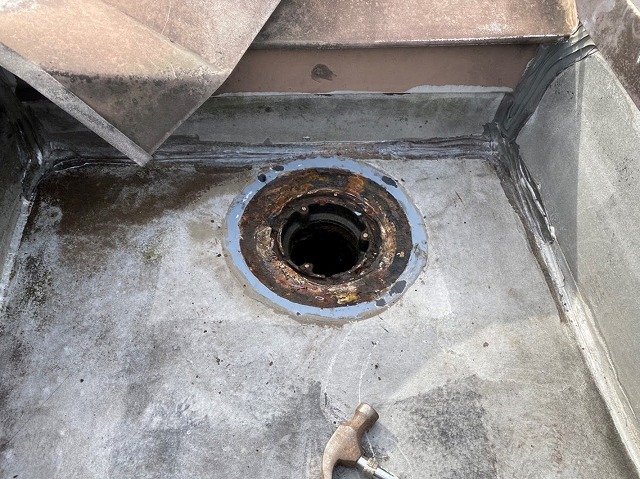 平坦な場所は雨水が滞留しやすく、その中でもドレンは雨水が集められる部位です。