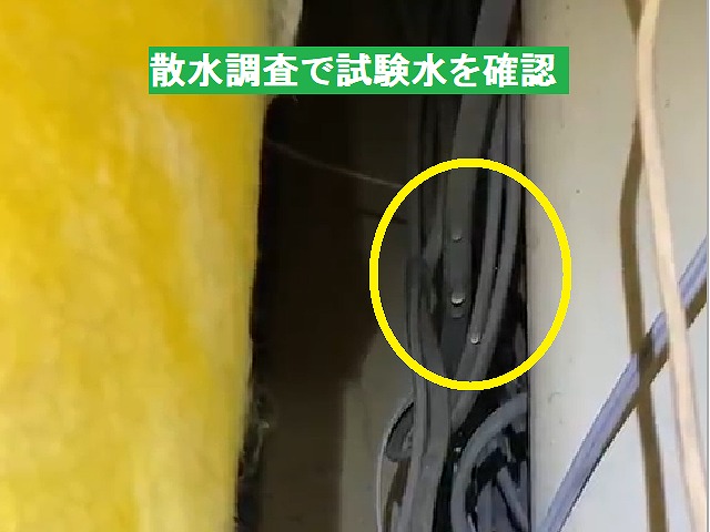その為、無料の初動調査では特定に至らず、二名体制で行う有料の散水調査を実施し半日かかってようやく特定しました。(散水調査費用:4.4万円(税込み))