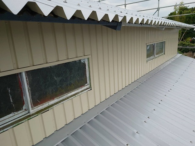 ホーム > 稲敷市で築30年の波状石綿スレートに折板屋根をカバー施工