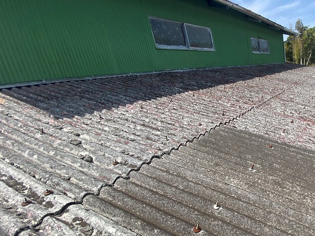 依頼主様は、敷地内に建つ倉庫の石綿(アスベスト)を含有する屋根の修繕を考えていたところ、弊社のブログで屋根カバー工法をお知りになったとのことです。