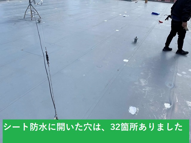 シート防水の厚みは1.5㎜~2.5㎜ありますが、そのシートが貫通してしまえば雨水は下地まで通水し雨漏りを起こします。